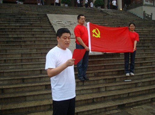 宣誓儀式上,三位預(yù)備黨員及全體老黨員面對著鮮紅的黨旗共同宣誓,響亮的宣誓聲音在風(fēng)雨中愈發(fā)清亮有力。儀式上,公司黨總支書記李跟發(fā)表祝詞,新老黨員代表也發(fā)言表態(tài),大家又一次受到深刻的思想洗禮。
